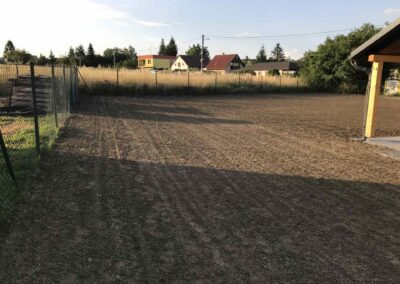 - Po první zimě, kdy mráz vytáhne ještě poslední kameny na povrch doporučujeme ještě jednou celou plochu projít a velké kameny znova vysbírat, poté doporučujeme převálcování těžkým hladkým válcem (nejlépe jak je půda ještě dostatečně mokrá).