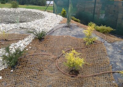 Velmi důležité u závlahových systémů výsadeb je, že při použití kapkovacího zavlažovacího potrubí v kombinaci s geotextílií a následným zamulčováním dekorační kůrou nebo zasypáním dekoračním štěrkem je nutá okamžitá výsadba rostlin. V případě, že nedojde k vysazení rostlin po provedení těchto prací, může dojít k tzv. “zahnívání půdy” díky podmočení a vytěsnění vzduch z této půdy a tato půda se pak stává neplodnou pro rostliny.